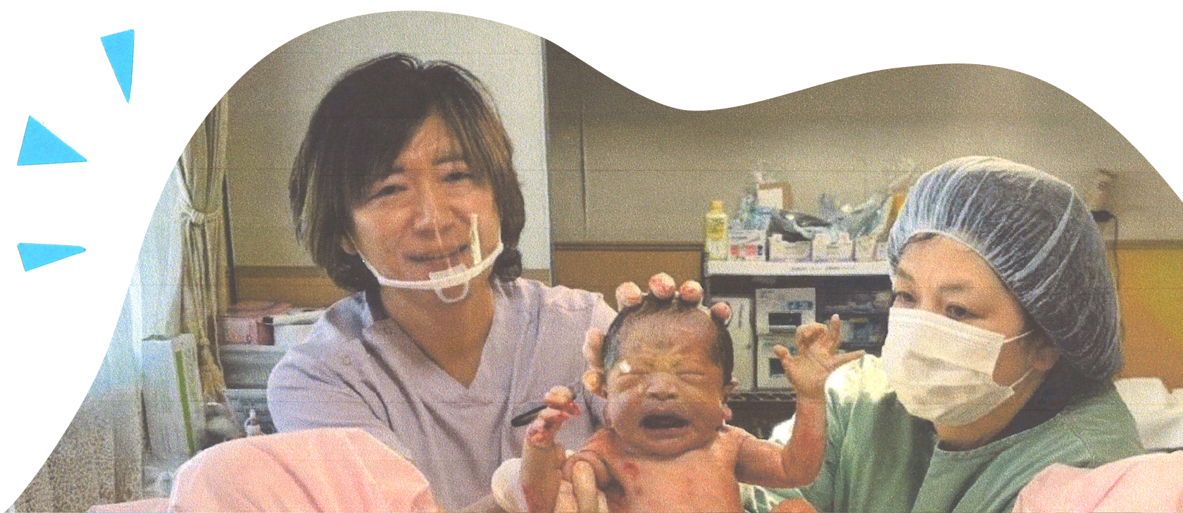 部分麻酔なので意識はしっかりあり、お母さんには自然分娩の時のようにいきんで出産をしていただきます。